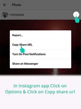 - Run Instagram -> "Copy share URL" of the wanted photo or video. That's all.