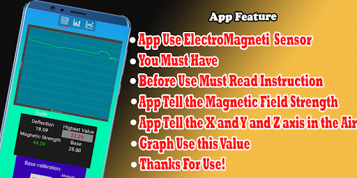 Normally Electromagnetic mobile sensor value built in the mobile and have 49µT. when you get any metal object or any metal things like iron hidden metal object or hidden metal gold this app will increase the value according metal magnetic strength of thing.