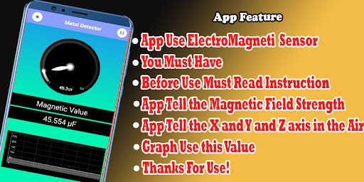 This app work outside of bank or office for checking human body if you have any metal things or suspicious things like gun .you caught person through this app easily without spend mobile. Mobile sensor must have your then this app metal detector free work.