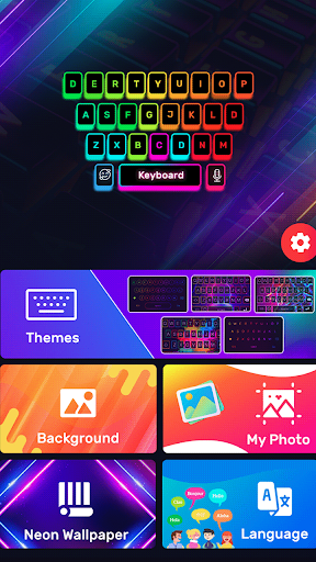 Fancy Photo Keyboard provides different keyboard layouts, picture keyboard backgrounds, dictionaries and settings.