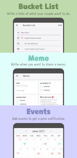 There is two type of memo: Checklist and Text. You can share memo with your love.