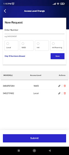 Add a request to block/unblock/Restore your numbers