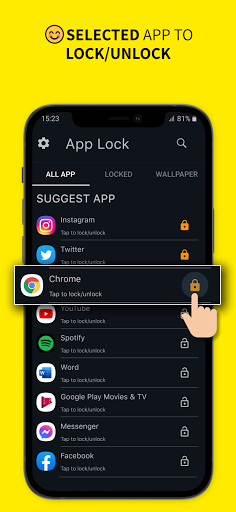 • App lock – Fingerprint is available on Android SDK 23 (Massmallow version).