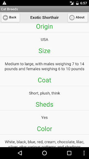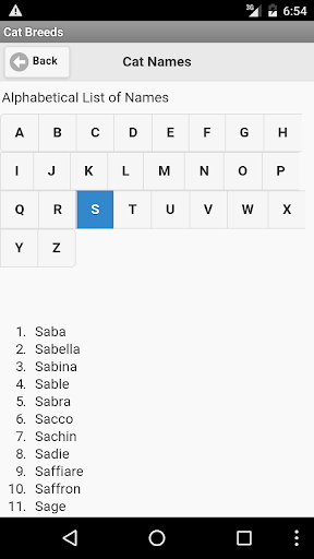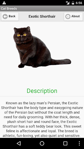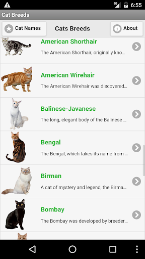 44 different purebred cat, each with a description and specification of breed cat. In addition, 2,000 different names for cats.