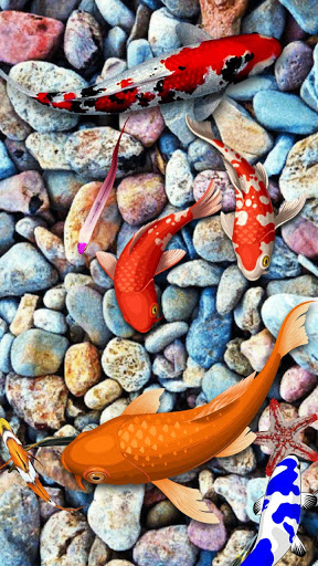 Koi fishes are swimming in the water garden in this live wallpaper. This is the screen saver free betta fish wallpaper. You can decorate your mobile phone and lock your android mobile phone with the best fish swimming live aquarium wallpaper. Feed or tease these naughty koi fish with your fingers to make them happier!