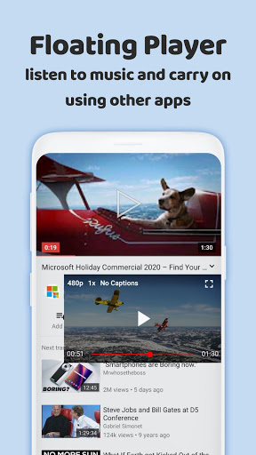 in this mode, the app is minimized and the video on your phone or tablet is displayed in a small window in the background. So you can keep using your device while you listen to music.