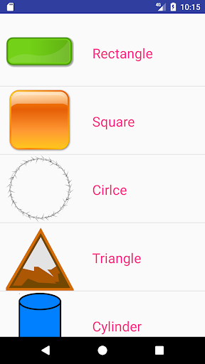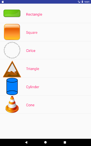 Rectangle, Square, Cuboid, Cube, Cylinder, Triangle, Cone, Circle