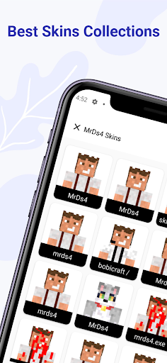 MrDs4 Skins for Minecraft is a free application that provides over 1000 skins from the famous YouTuber MrDs4.