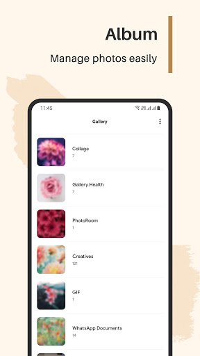 You can manage your photos, create photo albums, edit and share your media. Along with that, the gallery is a fully customized app where you can view albums in Grid or List form, Sort them by name, size, count, or last modified also, Group media by date, month, file type, or extension.