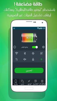 تطبيق حفظ البطارية - battery saver من أفضل تطبيقات الحفاظ علي البطارية , فهو يقوم باختبار بطارية جهازك ويقوم بعرض النسبة المئوية المتبقية لبطاريتك في شريط الاشعارات , ويقوم بحساب الوقت المتاح لاستخدام الهاتف نسبة للمتبقي من البطارية