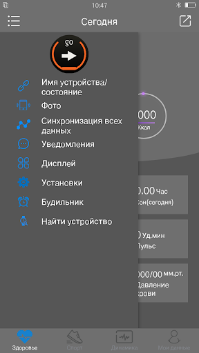 Приложение подключено к смарт-браслету, и мобильный телефон может отправлять напоминания на браслет при получении текстового сообщения или входящего вызова, а также может подсчитывать шаги, измерять частоту сердечных сокращений, артериальное давление, состояние сна и push-сообщения, такие как QQ, FaceBook, входящие вызовы и текстовые сообщения на браслет.