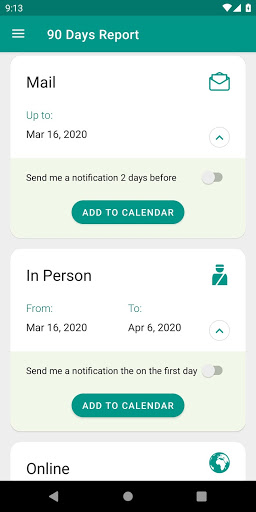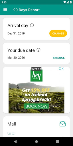 The application will remember your arrival date, so you can open it again to check if the dues are getting closer without needing to enter it again, even if you reinstall the app (as long as you are using Google's backup)