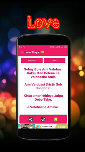 We have love poetry in this app. You can read more Bengali Shayari. You can read more Bangla love SMS. We have other Shayari in this application. Thank You...