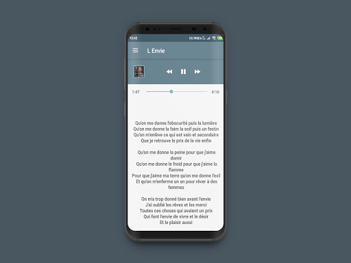 A music streaming application that is user friendly to use for all ages, it's very easy to operate, just select the song list to listen to it and the lyrics of the song are available, just swipe up the panel from the music player.
