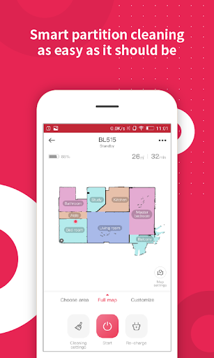 The robot APP also provides control functions such as device control, positioning function, cleaning record and equipment status.