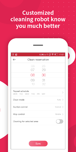 User can replace the traditional remote control with the APP, remote control the robot to clean and pause or other operations.