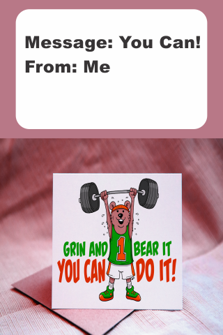 You see your friends is having a bad day? or you see your friends struggling in life? or you see your friends is training hard? You see all these but you are just to shy or afraid to tell them that they can do it? Now you can help them by sending a "You Can Do It" card simply by your smartphone.
