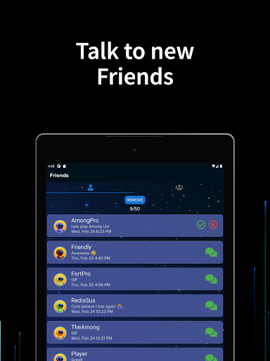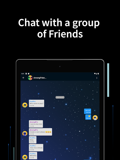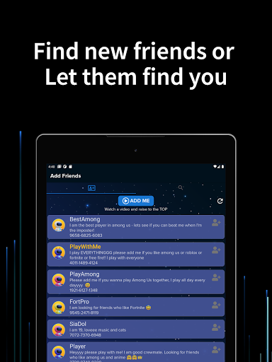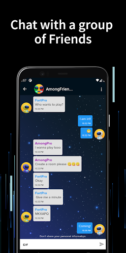 You can chat with friends from the Among Us or Roblox, keep in touch with them, or find new one from within our app.