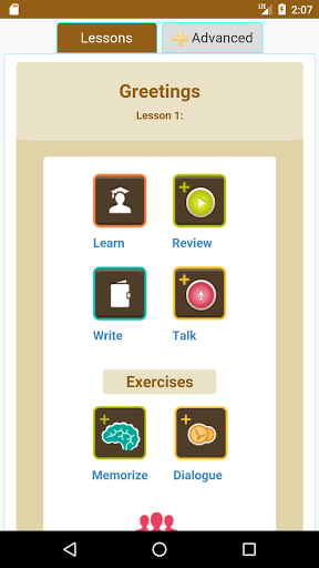 6 learning modules: Study, Write, Listen, Speak, Understand, Dialog