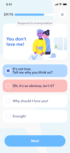 Breeze doesn’t aim to replace a therapist. The mission is to help you improve your self-assessment and raise your awareness about depression, anxiety, bipolar disorder, extreme mood swings, and other mental disorders. The app is based on several concepts from cognitive-behavioral psychotherapy and contains four main features described below.