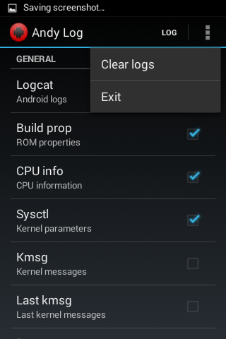 Andy Log is a small tool that dumps necessary logs for bug reporting without hassle.