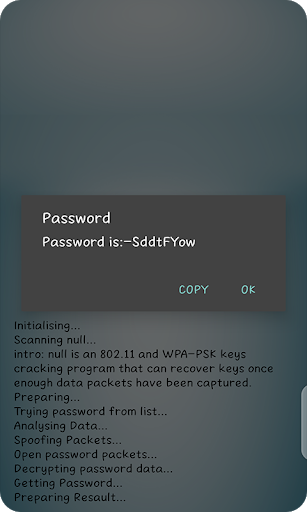 It makes you look like a proficient hacker and a technical genius. This is a very delightful prank to play on your friends. This app will work like WEP password generator and will show you some fake password of a wifi around you. You can pretend that you just hack wifi and got a free wifi on your phone .