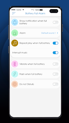 – Allows you to customize the notification when the battery reaches a certain level (20 -100%).