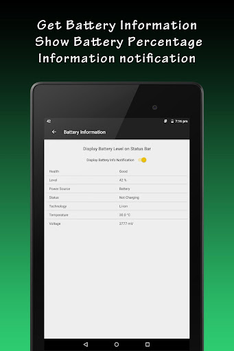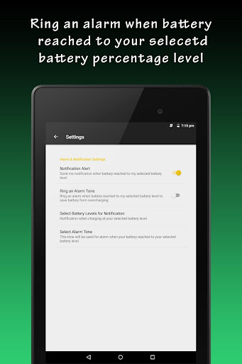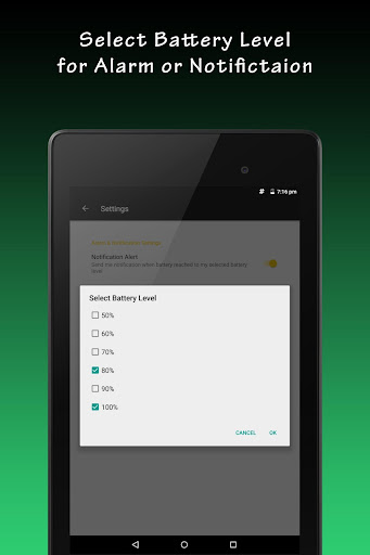 Full Battery Alarm is all in one app that provides you Battery Level Alarm, Battery Percentage Level Indicator on status bar and Battery Health Notification that shows battery information.