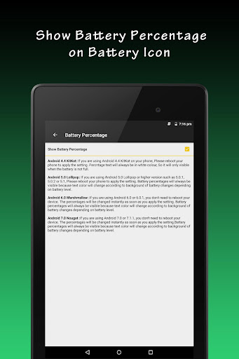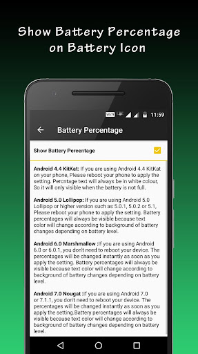 - Display Battery Percentage on Status Bar Battery Icon (It might not work on all phones)