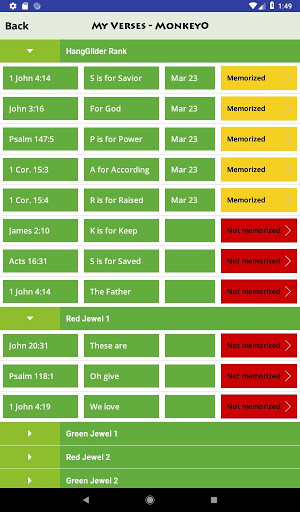 - Parents can easily track a child’s progress in the app to see whether a child has memorized or reviewed assigned verses