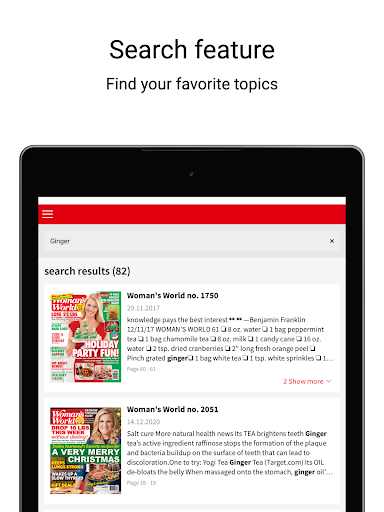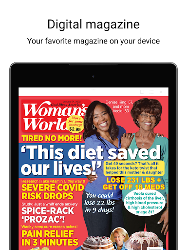 Want to be thinner, happier, healthier and less stressed? Welcome to Woman's World! Every page of this top-selling magazine is packed with great ideas for making your week easier and more fun! You'll find the latest weight-loss breakthroughs, easy money-saving tricks, mouthwatering recipes, inspiring real-life stories, family fun, and expert advice to help you live longer and look and feel your best!