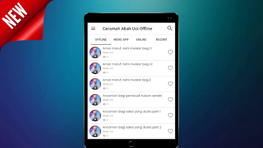تطبيق محاضر Abah UCI هذه المجموعة الأخيرة من الخيارات التي نوصيك بها. قم على الفور بتنزيل محاضرة Abah UCI كمحكم الخاص بك يستمع إلى النشاط أو الاسترخاء، وتنزيل محاضرات Abah UCI دون اتصال بالإنترنت والاستمتاع أيضا بالراحة عن طريق تحويل المحاضرات Abah UCI بشكل غير متصل بمعنى أنك لا تحتاج إلى استخدام اتصال بالإنترنت.
