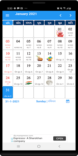 1.Simple Gujarati (Hindu) calendar in the traditional copy that you will already be familiar and comfortable with.