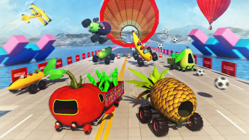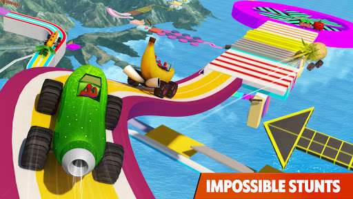 Multiple fruit cars in this impossible tracks car stunt games