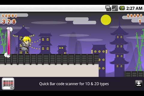 Ninja jump With fabulous wallwalking fantasyThe new ninja is carrying on wallwalking practice day after day to fulfill his dreaming of becoming a topnotch ninja.Oneclick to experience the coolest jumpYou can also compare with other ninjas in the world and gain your world rankingAbout terminal ID registrationIn order to indentify user in ranking function, we will acquire your terminal ID. We commit not to use your terminal ID for other propose except ranking. Please understand that once you changed your phone the ranking data will no longer be kept.SupportIn order to improve our apps, please feel free to contact us anytime by sending an email at quot;quot;game.club.help@gmail comquot;quot;.Please let us know the problem, your phone model and version of android you use. Sometimes we need more details to solve the problems of our products and services. Thank you for your support.