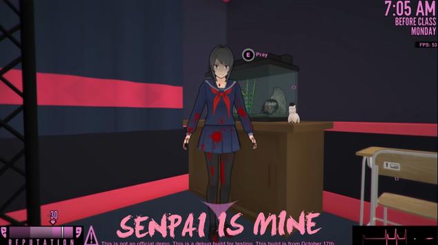 Live a love story a little crazy with video game simulator, a Japanese girl who is in love with Senpai, a handsome young man studying in the same school as her. He does not know Yandare is madly in love and neither the atrocities that will conquer your heart to imagine. Move with Yandre in high school to make popular and earn the respect of the friends of Senpai, gradually you will gain their trust and when meno would expect Wham!. Removes and hides his body to avoid suspicion. Be careful that you do not see bloodstained because you accused of murder and Senpai not want to see