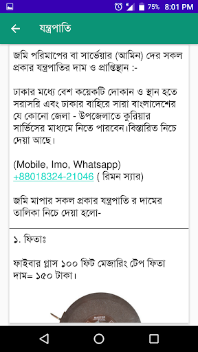 এটা এমন একটি এপ্স যেটা প্রত্যেক আমিন (সার্ভেয়ার) ভূমির মালিকদের কাছে থাকা দরকার । জমি পরিমাপ এর পরিপূর্ণ এপ্স। ভবিষ্যতে এই এপ্সে আরও অনেক ফিচার দেয়া হবে। ভূমি বা জমি নিয়ে যদি আপনার জানা ও শিখার আগ্রহ থাকে তাহলে এই এপ্সটি আপনার জন্য আদর্শ।