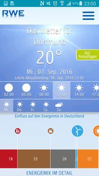 Die RWE-Energie-Wetter-App ermöglicht es Ihnen, ihr aktuelles Wetter vor Ort oder eines von Ihnen gewählten beliebigen andern Ortes in Deutschland zu sehen. Neben dem lokalen Wetter in der Stunden oder Tagesprognose, sehen Sie auch den aktuellen, in Deutschland produzierten Strommix mit den entsprechenden Anteilen an konventionellen und erneuerbar erzeugten Energieerzeugern.