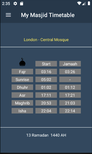 The app reads the timings from your local Masjid's website and present it to you instantly and equal to what the website shows and up to date.