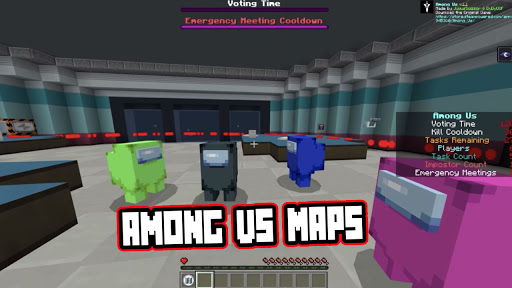 Maps of Among Us 🔥🔥🔥 is a science-fiction murder mystery mod for Minecraft PE. The map is set in a spaceship, which contains a group of crew members where there is, among them, 1-3 impostors has to sabotage the ship and kill everyone, where they must do the tasks and find out who the impostor is.