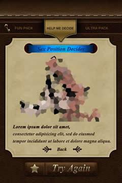 The idea of this game is simple: Push a button and another sex position / kamasutra position appears. These are all very tastefully drawn, but detailed enough to show you how to perform the position. If you are looking for a fun sex game, then look no further.