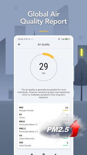 ·Show air quality, including index of PM 2.5, PM 10, SO2, NO2, O3 and CO