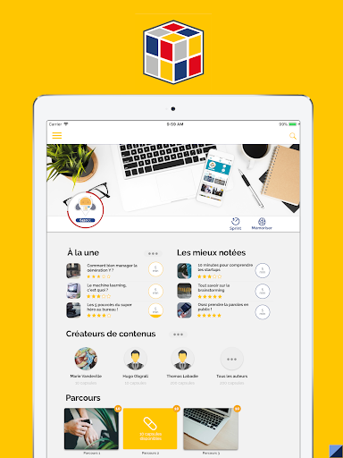 •異なるカプセルで構成され、短い形式(数分)で構成されています。いつでもアクセス可能な多様なコンテンツ。エリア:質問?クイズにブロックされていますか?フォーラムに質問を投稿したり、情報を共有したり、ニュースのフォーラムに参加したりします。