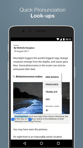 Quickly and easily access your lookup history. Learn pronunciation of new words, and keep track of the ones you've learned.