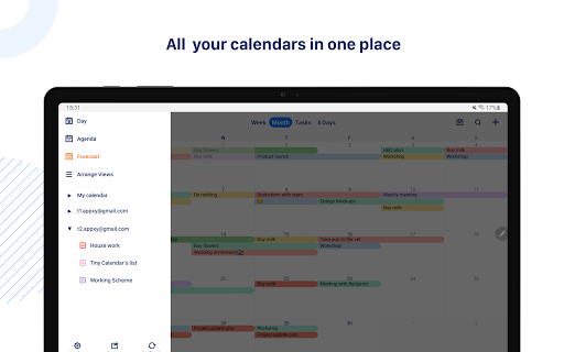 Tiny Calendar has features like drag and drop, gestures and other smart methods to predict your intention and help you create and edit your events more easily.