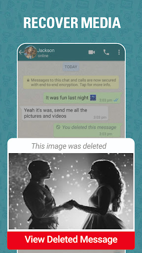 With recover deleted messages for whatsdelete: user can save deleted media, messages and it will notify user whenever any photo, audio, message, or video gets removed. Having Auto recover deleted messages you will save any media (Photo/Video) and messages for you. In Photo recover and status downloader it allows you to recover deleted photo and also save status of your loved ones. Whatsdelete recovery app is absolutely free app that helps user to monitor notifications and beside this saves all deleted media such as (Photo, Messages, videos, etc.). For recovering deleted media there is only one solution that is “Recover Deleted Message: Status Saver for Whatsapp”. In Recover deleted app user can restore and recover any deleted media, messages easily. It is very irritating for many of us to see "This message was deleted" and you always have a curiosity that what was in deleted message. View recover deleted messages is feature in which user can view messages which are sent by someone are encrypted on mobile, so there is no other way to access messages/media directly. By having Recover deleted messages app it allows you to recover deleted media, messages and also it has an amazing feature of cleaner, file management!