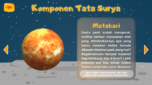 Aplikasi belajar Tata Surya (Matahari, Planet, dan Benda Langit) untuk anak anak. Khususnya untuk anak SD.