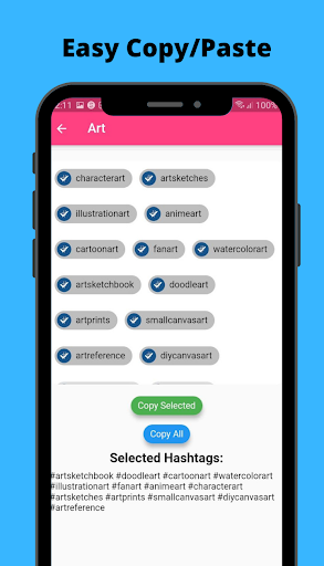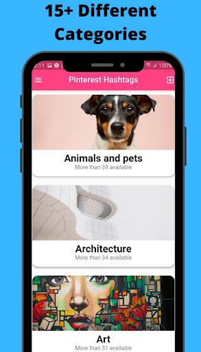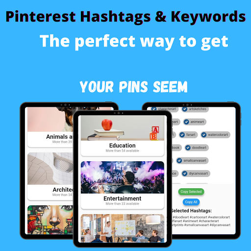 The Hashtags app has a nice and beautiful design. All hashtags are sorted by categories for easy selection. You can quickly copy the hashtags to use in social media (Pinterest). You can also use them as a keyword.