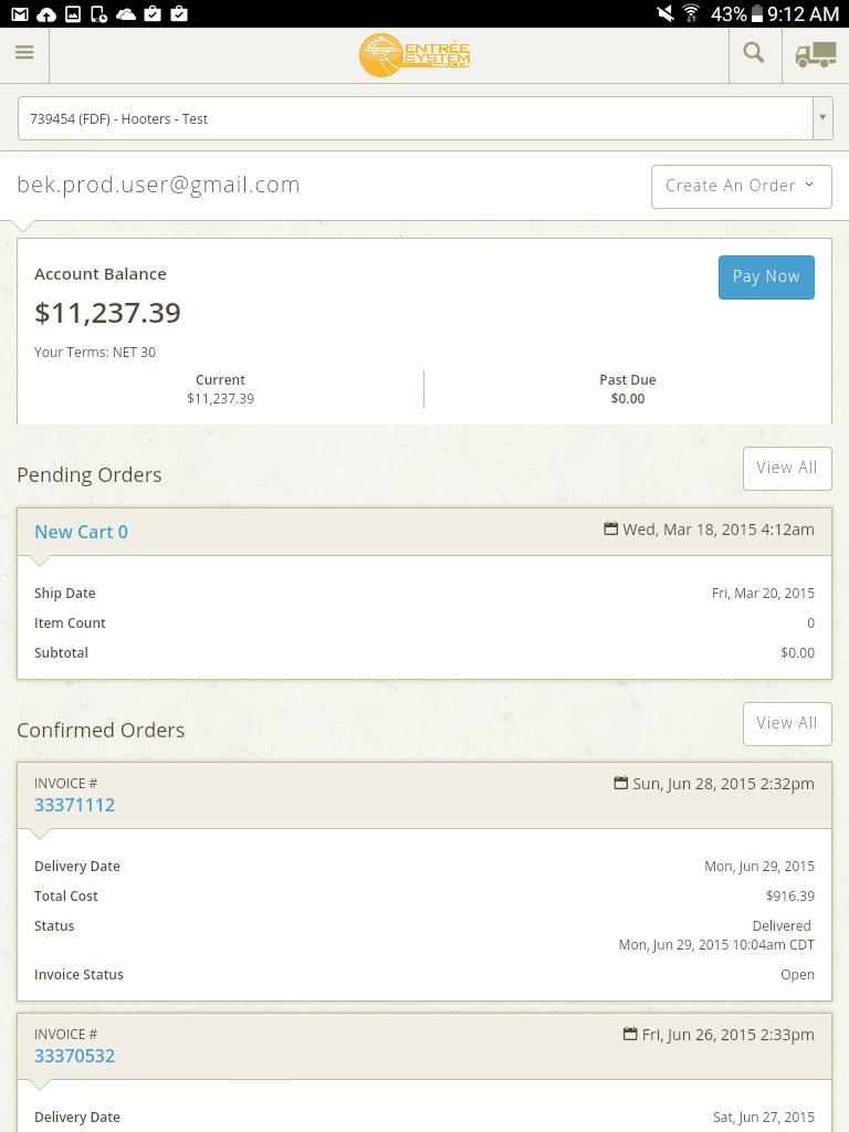 Entrée System allows customers to quickly and easily place orders, view invoices, pay bills, track deliveries, browse an extensive product catalog, and more.