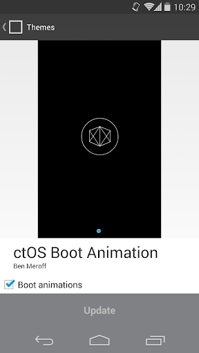 This app contains a boot animation that is to be used within the CM12 or CM13 Theme Manager, it